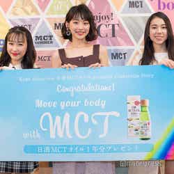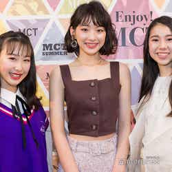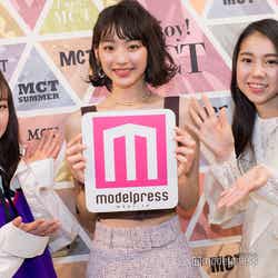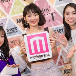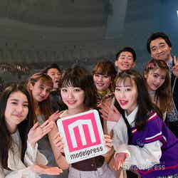 その後、モデルプレスとコラボした企画で、受賞者たちとモデルのちゃんえな(中野恵那)、石川恋、石田ニコルらがステージ上にて記念撮影。受賞者の3人はモデルプレスの取材にも応じた。