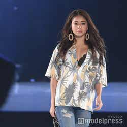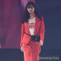 トップバッターはモデルの新川優愛。真っ赤なパンツスーツにトレンドのウエストポーチを合わせて登場し、クールな表情と圧巻のウォーキングで観客を沸かせた。なちょす&那須泰斗「神コレ2019S/S」ランウェイでキス