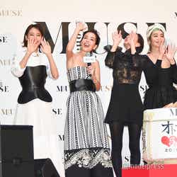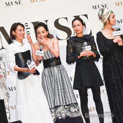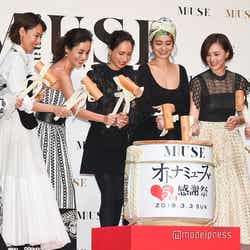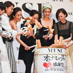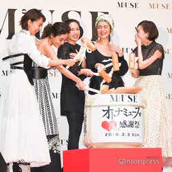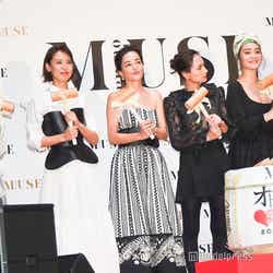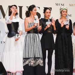 セレモニーでは、渡辺編集長とミューズモデルたちによる5周年を記念した鏡割りも。5周年を迎えた心境を聞かれたモデル陣は「創刊のときにもここでドレスを着て撮影をして、またこうやって皆でここに立てたことが嬉しい。ミューズモデルは海外活動が半端ないので日本在住で頑張らせて頂きます」(佐田)、「毎回お仕事が新鮮で楽しくて、今までのモデル人生で先輩モデルから教えてもらうことが少なかったのでミューズでは色々教えて頂いて良いモデル人生だなと常々感謝してます」(竹下)、「私は創刊のときは見てる側だったので、お声がけ頂いたときにこの中でどう表現しようかなと結構考えたんですけど、それぞれ(モデルの)キャラが立っている雑誌だと思って、そんな雑誌なかなかないし、見ててもやってても楽しいです」(小泉)、「(昨年9月に)出産したんですけど、先輩方もママなので、出産しても帰ってこれる場所で嬉しいなと思います」(浅見)、「見ていた側としていつか出たいなと思っていたので一緒に並ばせてもらってすごくありがたいです」(比留川)とそれぞれ同誌への思い入れを語った。