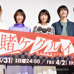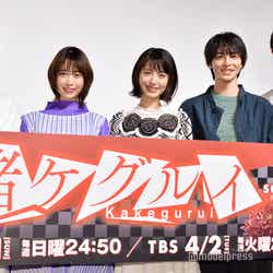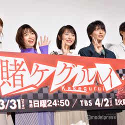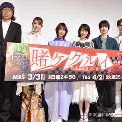 ドラマ「賭ケグルイ season2」(MBS・3月31日スタート、毎週日曜24時50分~/TBS・4月2日スタート、毎週火曜25時28分~)の完成披露試写会が4日、都内にて行われ、浜辺美波、高杉真宙、森川葵、松村沙友理(乃木坂46)、中川大志、英勉監督が登壇した。