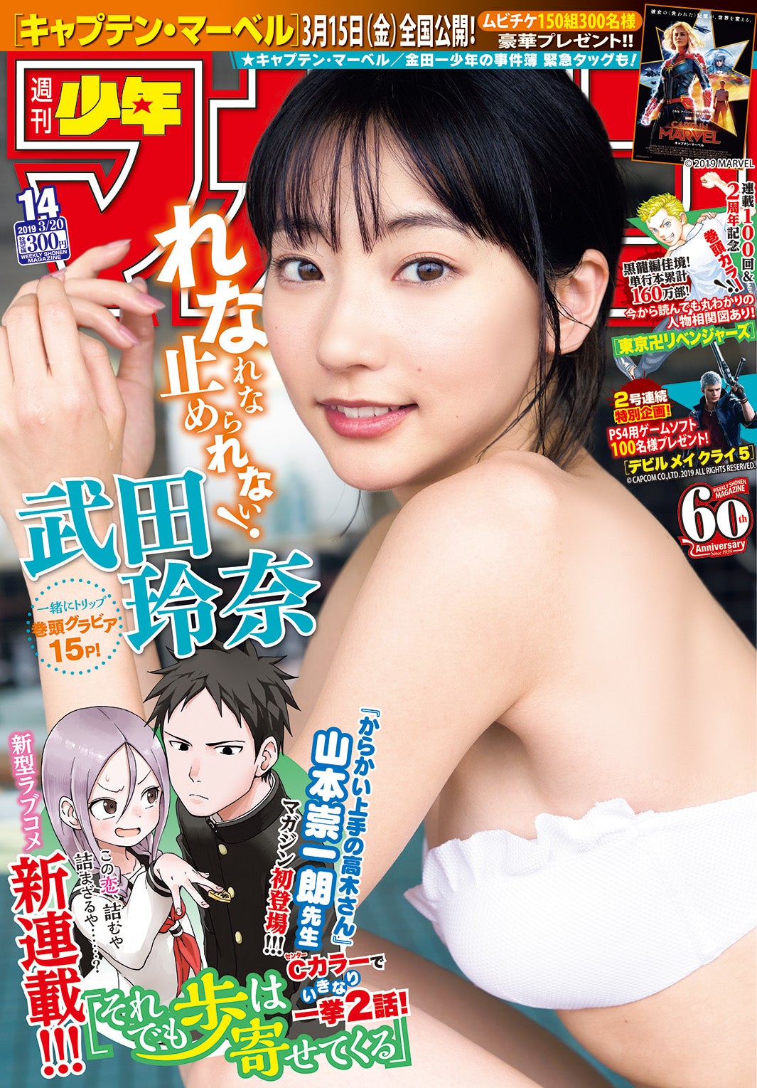 モデルで女優の武田玲奈が6日発売のマンガ誌「週刊少年マガジン」14号の表紙を飾った。