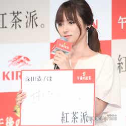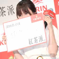 さらに、3人が共演するCMで“紅茶派宣言”をしていることから、それぞれ“紅茶派”になった理由もそれぞれ披露。「甘くない紅茶派」とした深田は、「私も歳を重ねるにつれてシンプルなものを好むようになったというか、今回のCMでもシンプルな服装で、自然な甘くない雰囲気がテーマだったのもあって、今回こういうふうに書かせて頂きました」と自身の変化もふまえて告白。これを聞いたリリーから「深田さんが甘くないって言っているだけで、逆に色っぽい」との声をかけられた際には、フリップで顔を隠して照れていた。