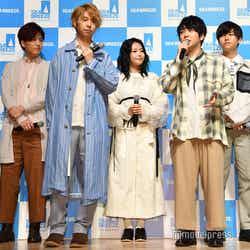 女優の池間夏海とダンスボーカルユニットSUPER★DRAGONで俳優の古川毅が12日、都内にて開催された新CM発表会に、5人組ロックバンド・Mrs.GREEN APPLEと出席した。