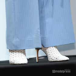 爽やかなブルーのパンツスタイルながらも、ピンクのトップスを重ね着した“マニッシュ×レディ”コーディネートで登場した小松。「今回の増刊号は東京スタイルということで、東京で活躍してるブランドAKIKOAOKIさんで、マニッシュなんですけど、オーガンジーの素材も使っていて女性らしさも入っているところがポイントです」と紹介し、「形がすごくきれいで、ドキドキしています」と笑顔を見せた。