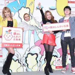 世界中のクラブシーンで圧倒的なパフォーマンスを披露して人気を集めている ゴーゴーダンサーチーム・CYBERJAPAN DANCERSのKANAE、KAZUE、JUNONが14日、都内で行われた「顔出しんさい!広島県」出発イベントに、顔出し看板ニストの塩谷朋之氏とともに出席した。