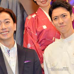 共演が「約20年ぶり」という2人。河合は「安心します!すごく安心するので、これが当たり前だと思っちゃいけないなって」と気を引き締め、辰巳は「本当に一緒にやっていて安心感がある。何をやってもお互いフォローし合える仲。ステージ上でも、何でも受け止めてくれるだろうなという感じでやっています」と絶大な信頼を置いている様子。新橋演舞場での単独初主演を迎えた河合は「最初にステージに立った時に、どうしても昔、10年前に滝沢(秀明)くんが目の前にいたので、どこかに滝沢くんがいるんじゃねぇかと錯覚を起こしながら稽古をしていくうちに、自分がこのステージに立つんだ、しっかりしないといけない、と初日を迎えました」としみじみ。一見リラックスしているように見える河合だが、本番前は「緊張しすぎて、辰巳の楽屋に何回も行き来していました」と明かし、辰巳は「今回タッキーがいないので、タッツーの楽屋に!」とドヤ顔。河合は「ちょっと弱いなぁ(笑)」と返して笑いの渦に。