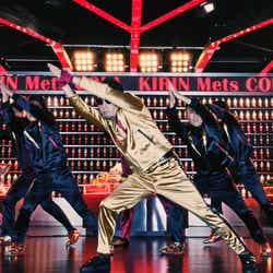 「超ラジオ体操」は、藤森慎吾のディレクションからスタート。まずは準備体操で盛り上げ、藤森のラップへ。ラップしている中、背後には金色の衣装とサングラスを身に着け、仁王立ちしている中田敦彦。力強いラップから、中田によるキレキレのダンスへバトンタッチ。最後は「ふつうの刺激じゃ、退屈だ。」というメッセージで締めくくる。