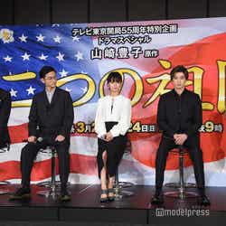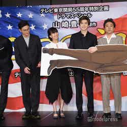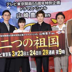 テレビ東京開局55周年特別企画ドラマスペシャル『二つの祖国』(3月23日、24日の2夜連続)の記者会見が19日、同局にて行われ、ムロツヨシ、多部未華子、高良健吾、新田真剣佑、松重豊が出席。主演の小栗旬は、海外で撮影中のため中継で参加した。