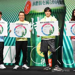 俳優の田中圭、女優の朝比奈彩、お笑いコンビ・さまぁ~ずの大竹一樹、三村マサカズが27日、都内にて開催されたイベントに出席した。