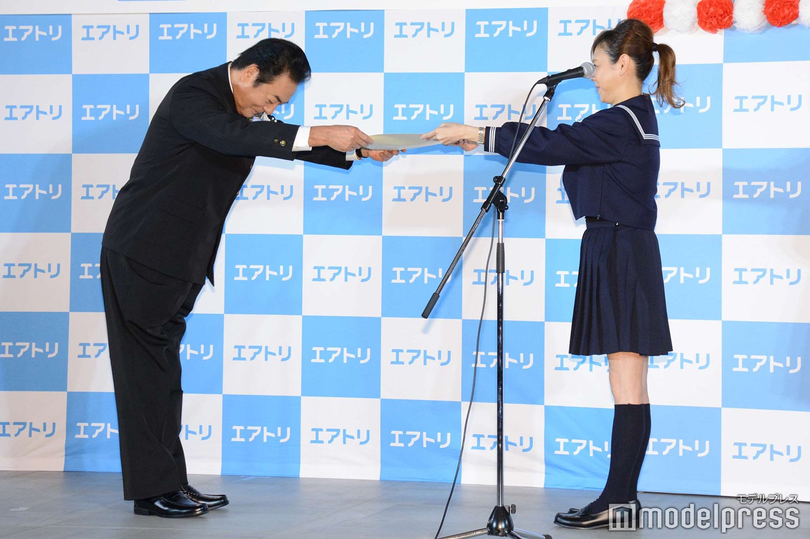 一方の英樹は学ラン姿で登場。「何十年かぶり。顔(の大きさ)が半分だった頃に着ていたと思います」と冗談で会場の笑いを誘った。
