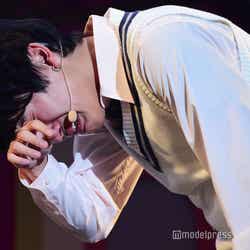 同誌史上初のメンズモデル卒業式を行った中島。ステージでは、中島が先生、中野恵那(ちゃんえな)・本田響矢(きょーちゃん)らが生徒役というミニ芝居からスタート。そしてサプライズで、中野、土屋怜菜(れいぽよ)、本田、那須泰斗(たいころりん)から手紙が。中野は「今の私がいるのは健くんのおかげです」、土屋は「これからも私の中で中島健くんは、かっこよくて、尊敬できる偉大な先輩です。大好きです」、本田は「これから健くんのように、健くん以上にメンズモデルを引っ張っていきます」、那須は「いつでもかっこよくて、みんなをまとめる姿は、まさにキングでした」などと、全員号泣しながら手紙を読み上げた。