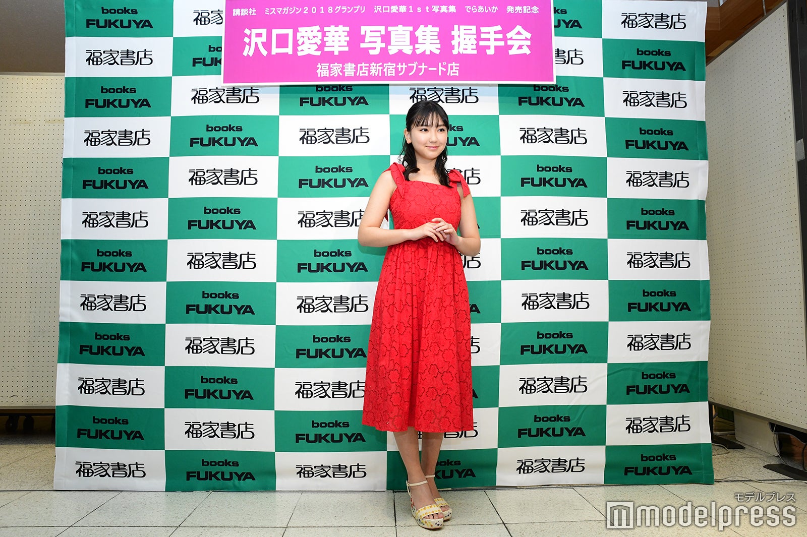 名古屋発のアイドルグループ・delaのメンバーで、「ミスマガジン2018」のグランプリを獲得した沢口愛華が30日、都内で開催された自身のファースト写真集『でらあいか』(講談社/撮影:LUCKMAN)の発売記念イベント&囲み取材に出席した。