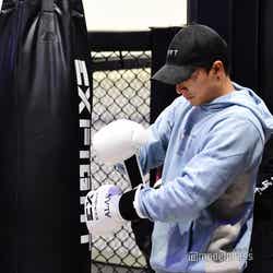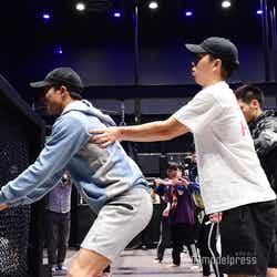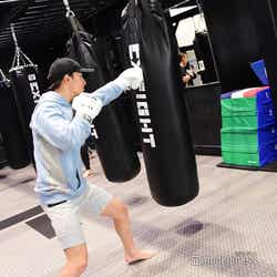 まずは、白濱レクチャーによるウォーミングアップから。「LDHの皆がやっている」というストレッチを丁寧に説明しながら進めた。その後は、パンチやキックなどキックボクシングの動作を確認し、サンドバック打ち込みの白濱グループ、ミット打ちの数原グループにわかれ、いよいよ体験へ。