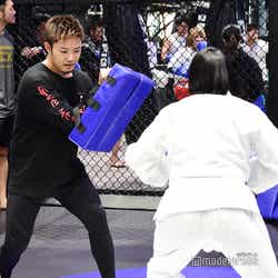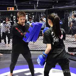 サンドバック打ち込みではパンチとキックを白濱が直接指導し、ミット打ちでは数原がミットを持ち、1人30秒ずつ実施。男性の参加者には数原が「それで大事な人を守れるのか!」と活を入れ盛り上げていた。