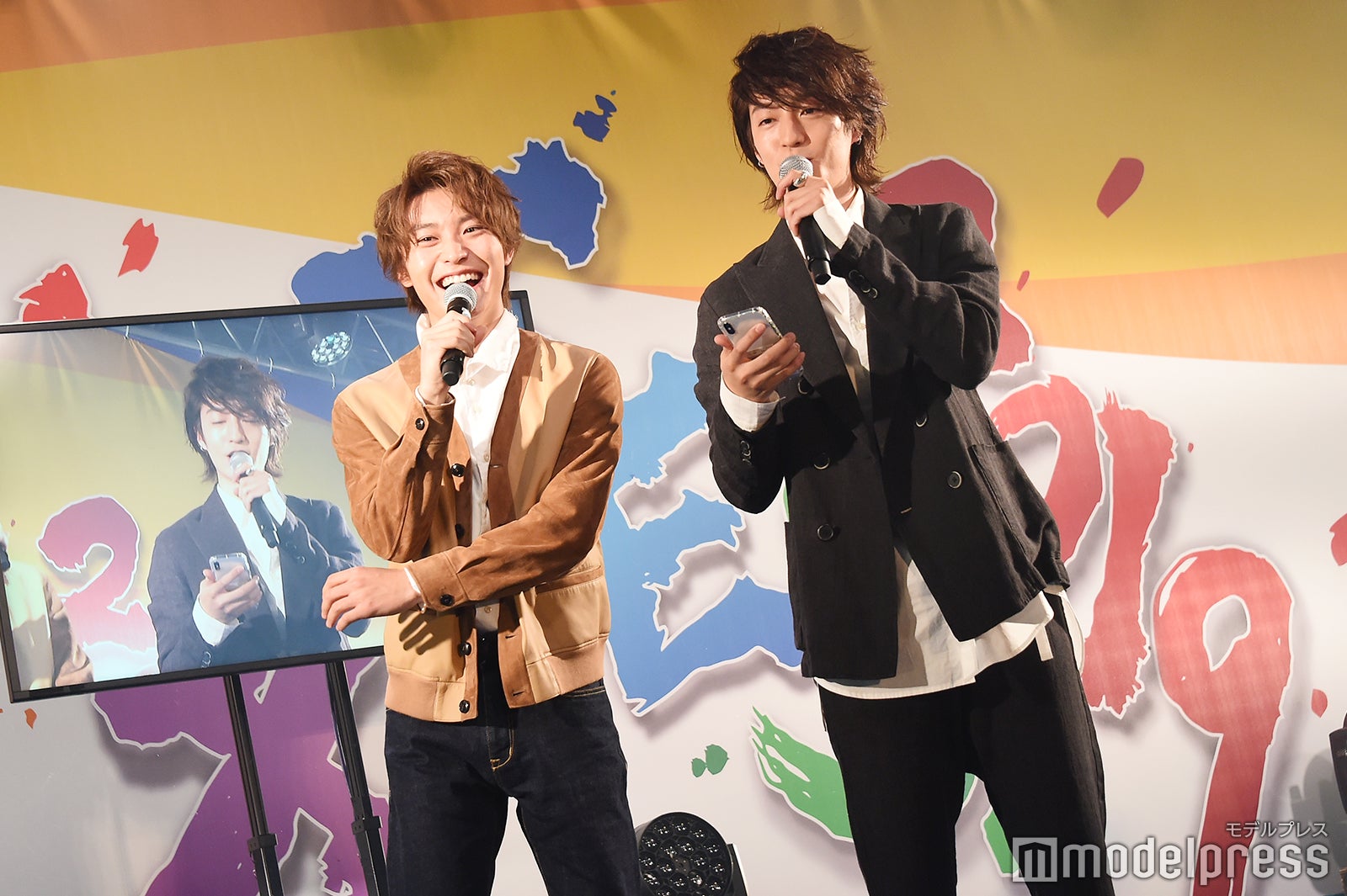 元Love-tuneの真田佑馬と阿部顕嵐が31日、東京ドームシティプリズムホールにて開催中の「TOKYO MX FES.2019」内イベント「真田佑馬と阿部顕嵐のつなげるつなげるつなげる」に出演。サプライズで諸星翔希、森田美勇人、長妻怜央も登場。萩谷慧悟もテレビ電話で出演した。