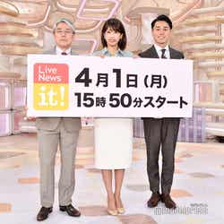 フリーアナウンサーの加藤綾子が31日、東京・台場のフジテレビで行われた新報道番組「Live News it!」(毎週月~金曜16:50~19:00、初回4月1日は15:50~)の囲み取材に、フジテレビ報道解説委員の風間晋氏、フジテレビの木村拓也アナウンサーとともに出席した。