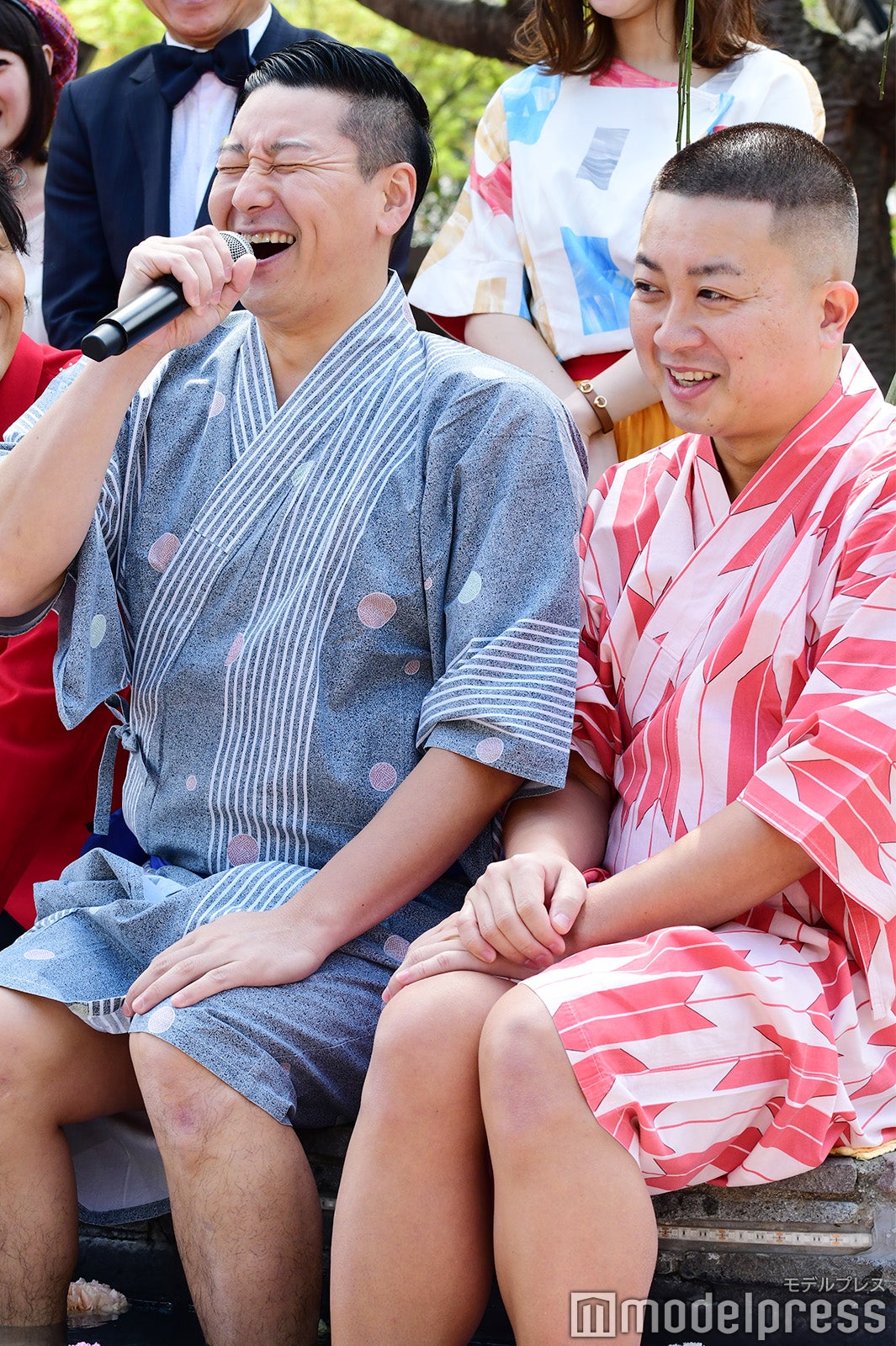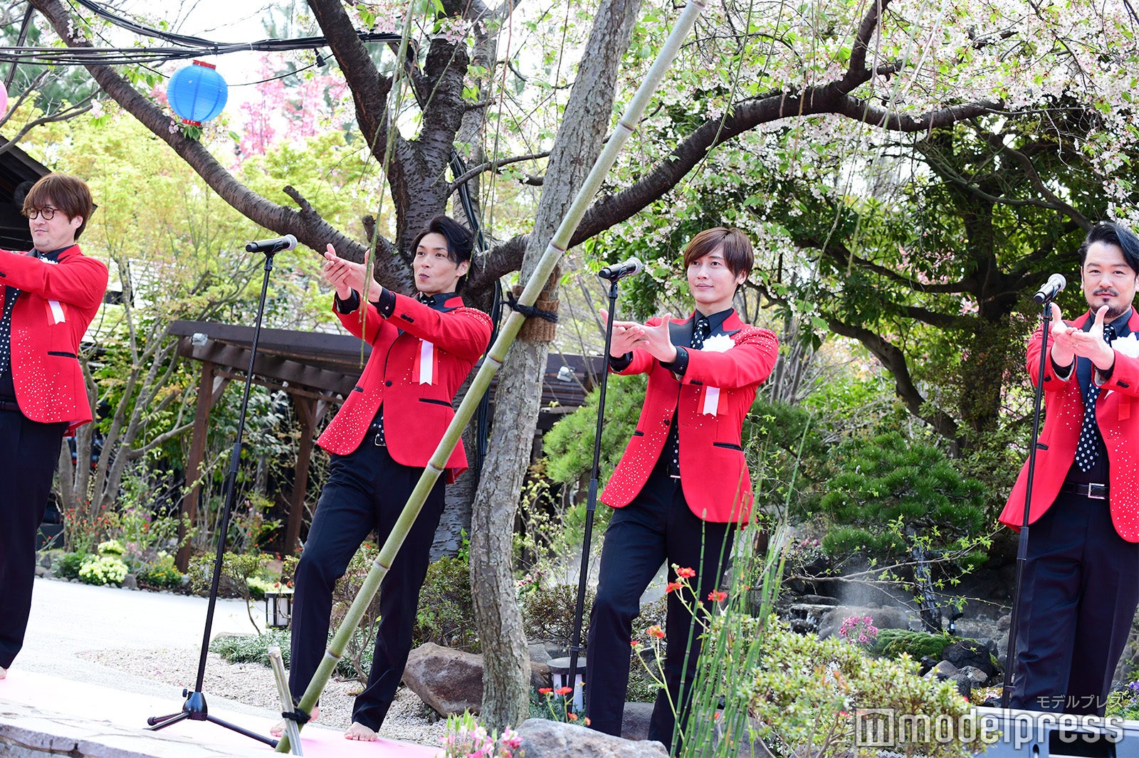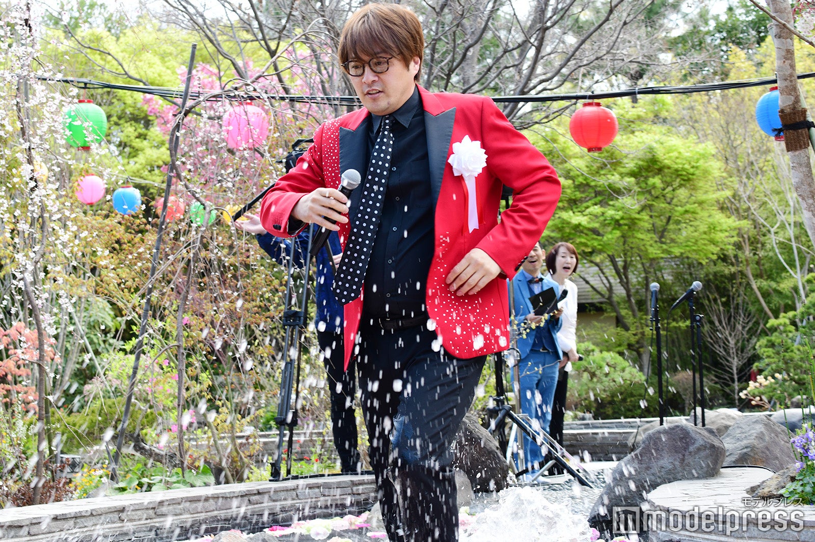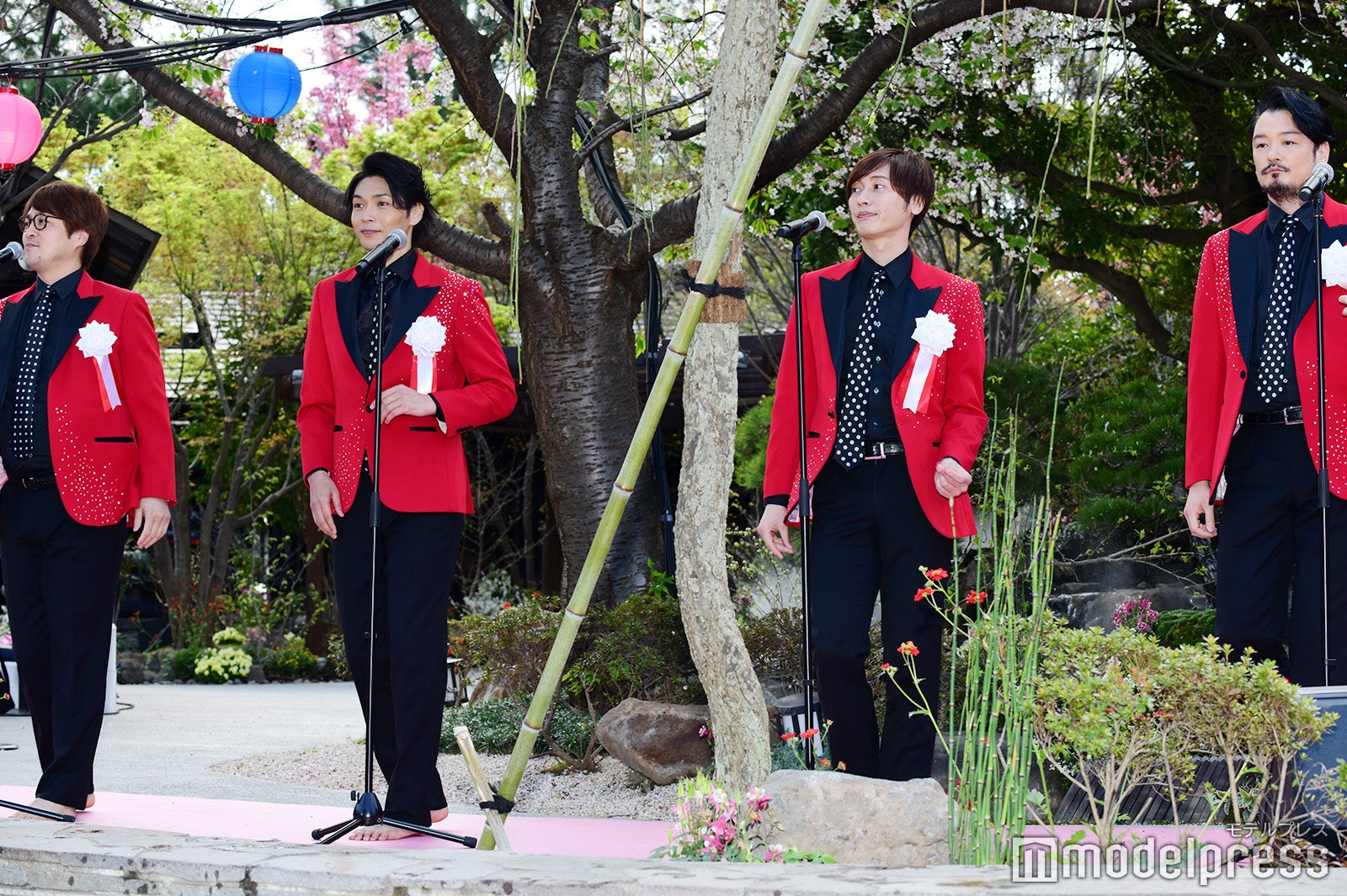 この日は吉本坂46の三秋里歩と高野祐衣も登壇。純烈やチョコレートプラネットのメンバーとともに足湯を楽しんだ。また純烈はライブパフォーマンスを行い、酒井は衣装が濡れるのもお構いなしに、足湯を闊歩して会場を沸かせていた。(modelpress編集部)