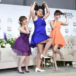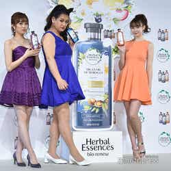 同商品のボトルにちなんだミニ丈のドレス姿で登場した3人。菊地は「この衣装を着るときに、アイドルグループの衣装みたいでめちゃくちゃ恥ずかしかったんですけど、これで行っちゃおうよって感じだったので」と照れ笑いを浮かべ、福島から「めちゃくちゃかわうぃい」と絶賛された。