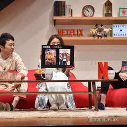 同キャンペーンのテーマ“本気でサボろう!”に相応しく、普段、自宅で着ているような部屋着姿で登場した3人。池田の部屋着姿を見た田中が「みちょぱってそんな感じなんだ。オシャレすぎる。絶対ウソでしょ。俺らは普段(の姿)でさ、メイクさんに寝癖までつけてもらってるのに」と噛みつくと、池田は「中学生のころは団地に住んでいたので、そのときは中学のジャージとかを着ていたんですよ。1人暮らしを始めてから家もちゃんとした家になって、家具もこだわって買ったりすると、やっぱり部屋着もちゃんとしたほうがいいかなと思って、そこから有名なルームウエアが売っているお店で買うようになって、毎年変えているんです」と必死に説明。これに田中は「毎年変えてるの?」と目を丸くし、「じゃあ、使い終わったやつちょうだいよ。お母さんにあげるから」とお願い。池田は全力で拒否し「ちょっとセクシーなものも買ったりします。ここら辺(腰)がレースっぽくなっていて、ちょっと横から見えるみたいなやつとか買ったりしますね」と打ち明けると、田中は「それちょうだい」と粘ったが、池田から「気持ち悪い」と一蹴された。
