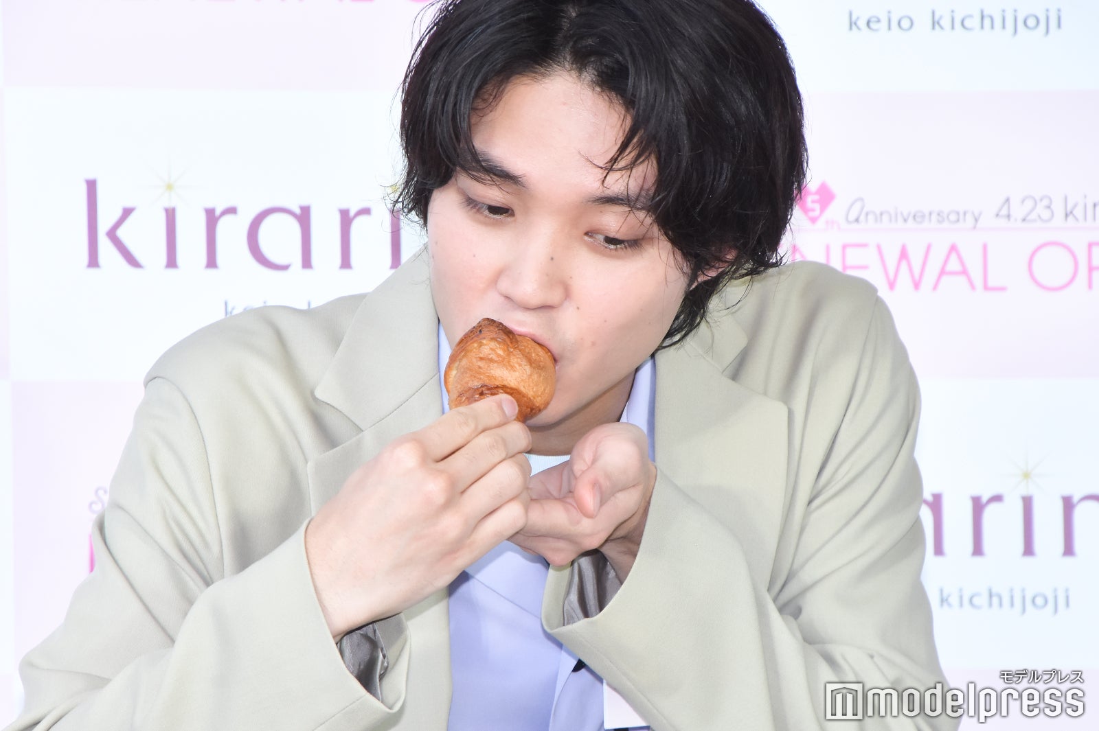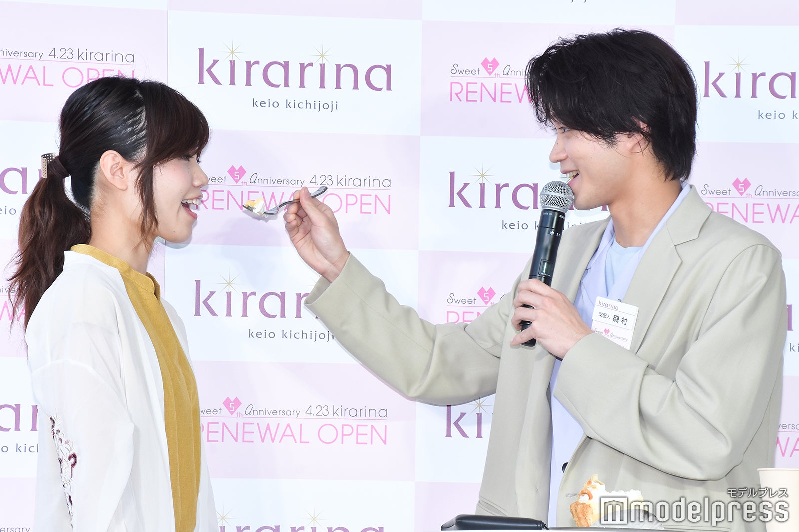 また、磯村は報道陣の前で初めての食レポに挑戦。「おいしい、ペロッと食べれる」と感想を述べた後、「…もっと『宝石箱や~』とか言ったほうがいい?」とニヤリ。さらにファンの中から選ばれた1人が磯村からスイーツを「あ~ん」される場面も。「“公開あ~ん”なんてやったことないですよ」と照れまくり、ファンにレモンパイを食べさせると「なんでしょうね、この感じ。いままで味わったことがない…」と赤面していた。