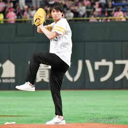 俳優の鈴木伸之が22日、東京ドームで行われた「福岡ソフトバンクホークスVSオリックス・バファローズ」の始球式に登場した。