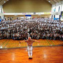 また、同日には、卒業後初めて母校の高校をサプライズ訪問。リリースイベントでの帰郷に際して、4月に入って新入学・進級を迎えたばかりの後輩たちにメッセージを贈りたいという想いから、今回の訪問が実現した。昼休みの集会ということで体育館に集められた全校生徒821人が静かに先生の話を聞く中、ステージに突然RYUCHELLが登場。すると、驚きと興奮で割れんばかりの歓声が。「りゅうちぇるー!!」という大きな掛け声が飛び交う中、生徒達はステージに駆け寄り、一気に熱気が溢れ出した。