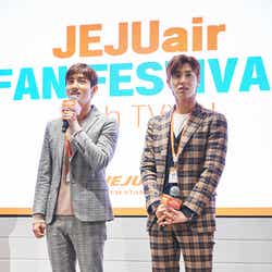 チェジュ航空が韓国ソウル・ホンデAKタワーにて現地時間13日、「JEJU air Fan Festival with TVXQ! ~集まろう!チェジュ航空アンバサダー~」と題したイベントを開催。チェジュ航空のイメージモデルであり、名誉社員である東方神起が登壇し、日韓ファン各50人、計100人と交流した。