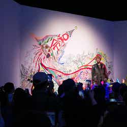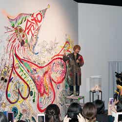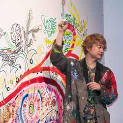 「信じられない!10万人ですよ。個展は多くの人に見てもらわないと完成しないので、みなさんが来てくださってのもの」と感謝を伝え、「あんまり僕緊張しないんですけど、初めてこういう形で登場して、さっきあの(オブジェの)裏に隠れてて、鼓動がドクドク鳴ってるから緊張しちゃった」とファンとの対面を喜んでいた。