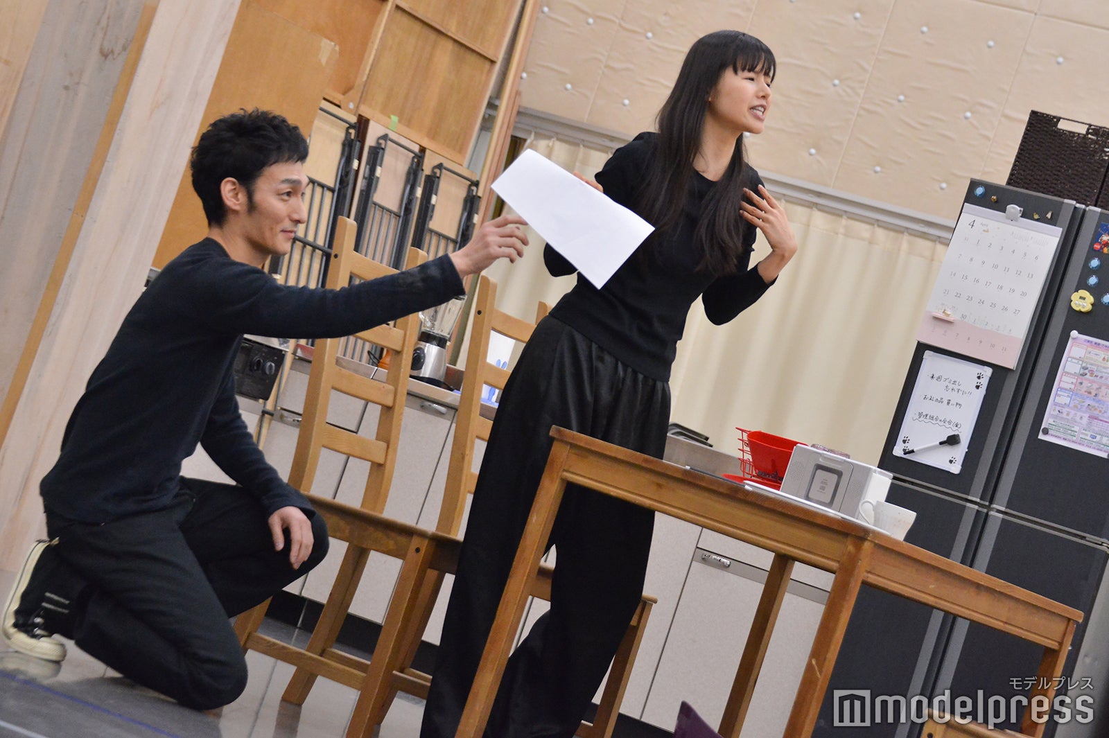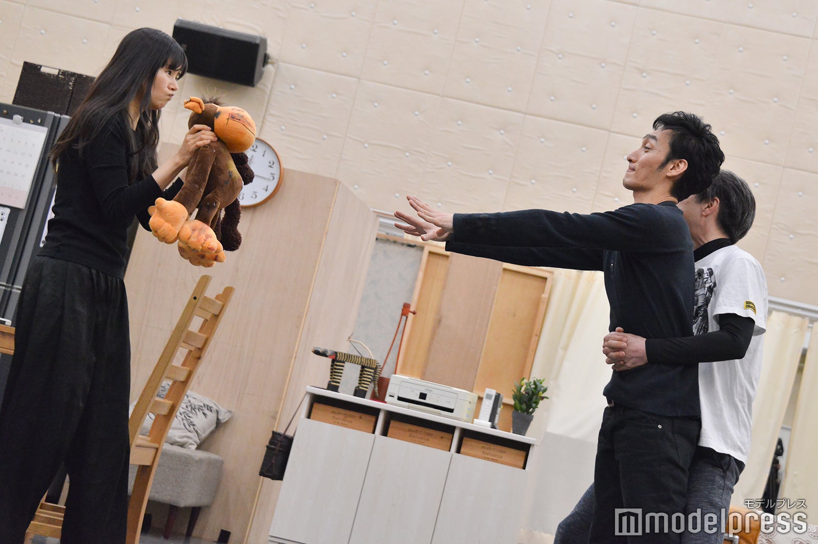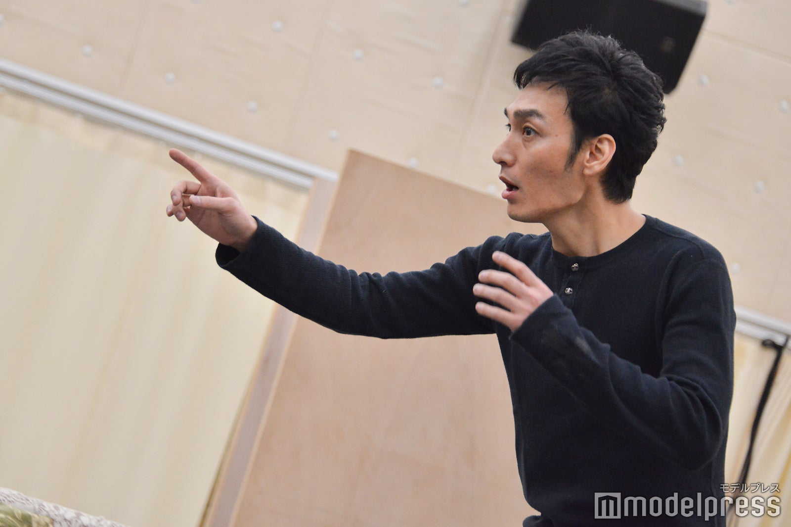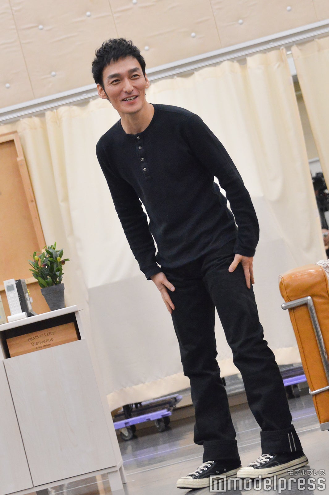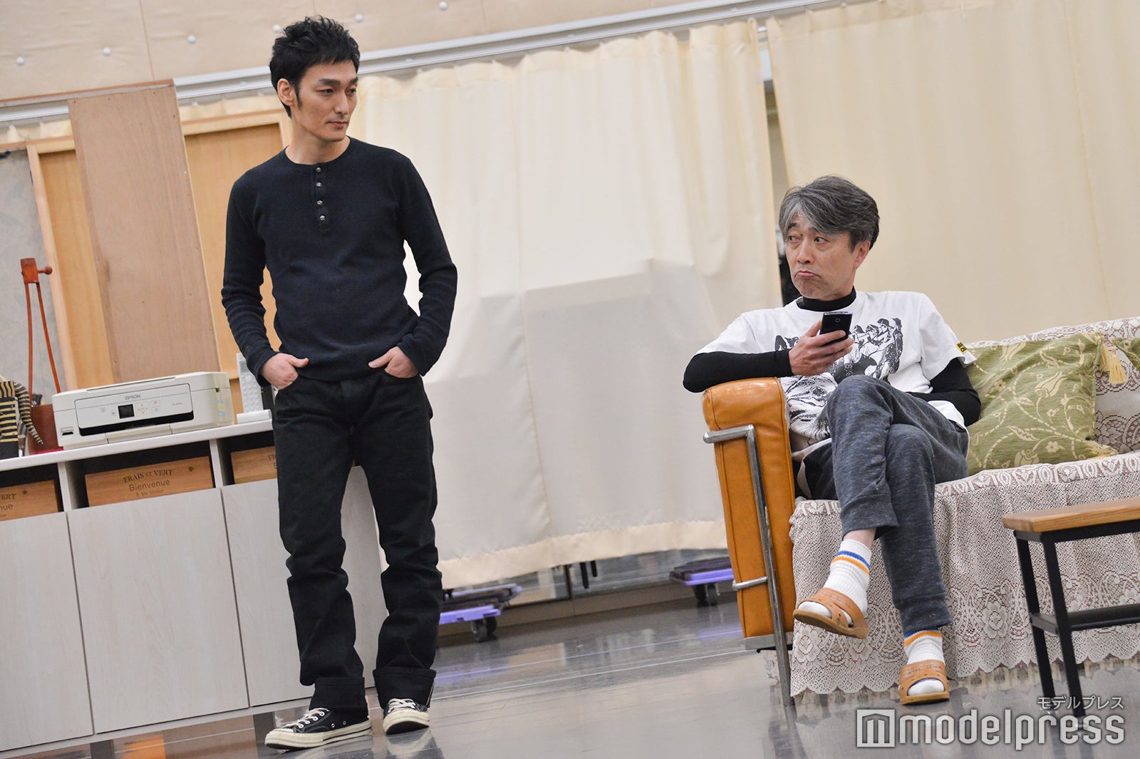 俳優の草なぎ剛が27日、都内にて主演舞台『家族のはなし PARTI』(5月4日より京都劇場にて上演)の公開稽古を小西真奈美、池田成志とともに行い、その後の囲み取材に応じた。