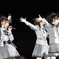 この日はイベント開始時から雨が降っていたが、AKB48のステージを前に晴れ空に。MCでは晴れ女だという込山榛香が、雨女なことで有名な柏木由紀に「勝ちました!」と笑わせる場面も。柏木は「沖縄の総選挙を中止にした人間だから」とまさかの自虐で会場をどよめかせた。