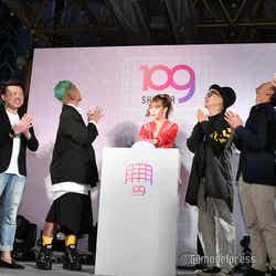 セレモニーには、新ロゴコンテストの審査員を務めた渋谷区長・長谷部健氏、アートディレクターの千原徹也氏、 SHIBUYA109リニューアルのクリエイティブディレクター・五十嵐リンダ渉氏、新ロゴマークをデザインしたハナガキダイジュ氏・池田敦美氏、そしてSHIBUYA109エンタテイメント代表取締役社長 木村知郎氏も登壇した。(modelpress編集部)