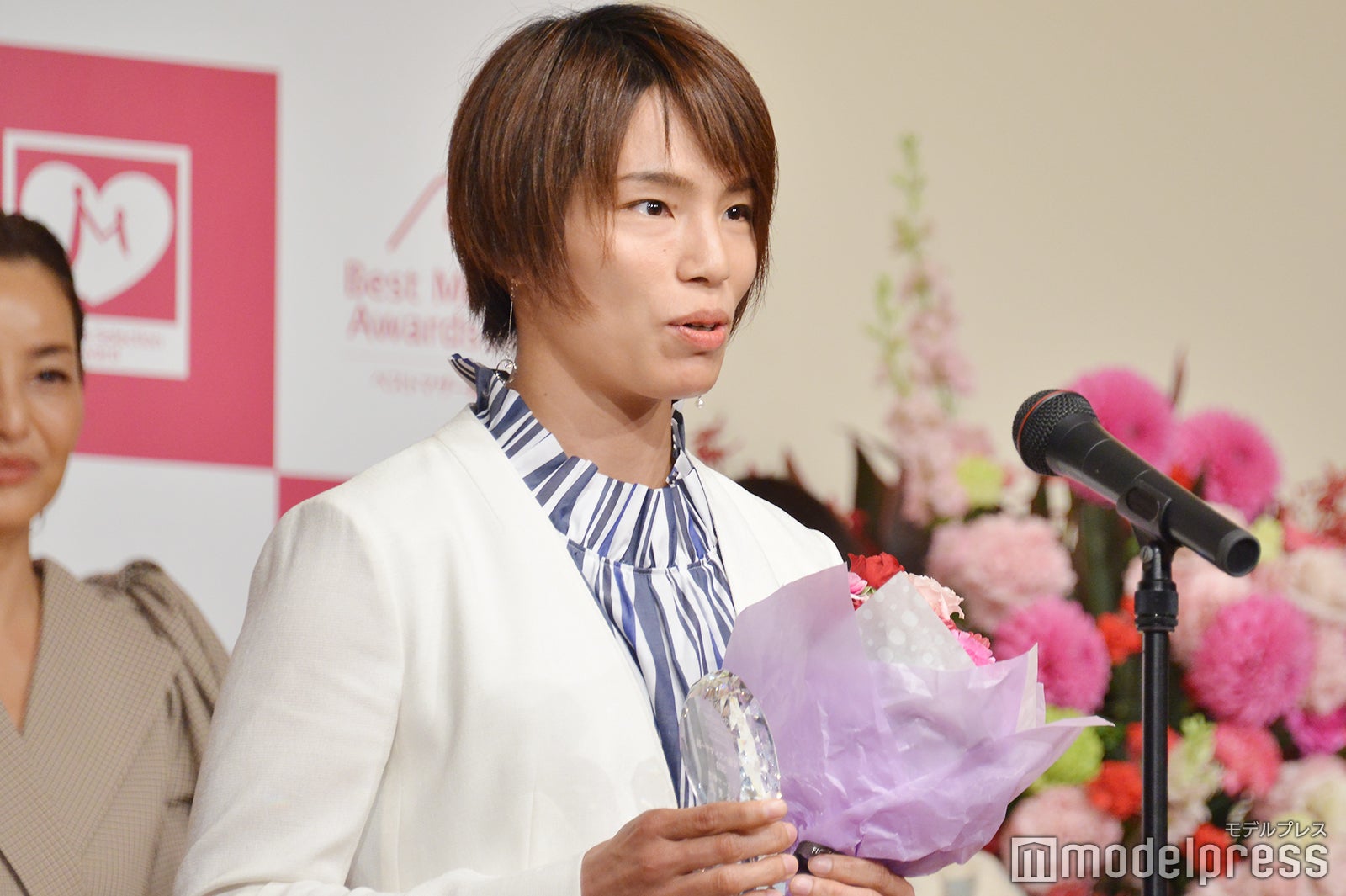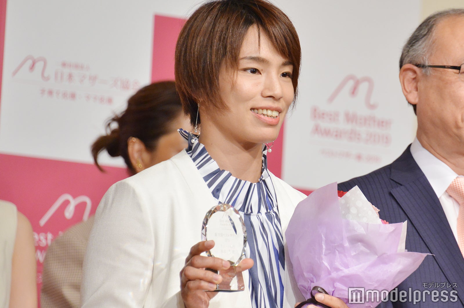 松本は「ママとしては白帯で、後ろの黒帯さんたちには程遠い」と恐縮しつつも、受賞を喜んだ。(modelpress編集部)