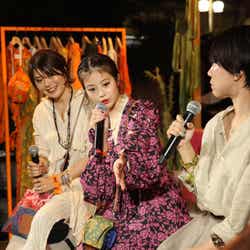 今田は、パウラズイビザコレクションよりピンク生地に天使の柄がプリントされたボヘミアンテイストあふれるドレスをまとい、トークショーにも参加した。