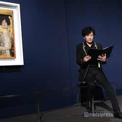 19世紀末にウィーンで活躍した画家・グスタフ・クリムトの作品を展示する同展覧会のスペシャルサポーターを務める稲垣は、「大役を任せていただいて光栄です」とあいさつ。初めて訪れた同展に終始感激しきりで「クリムトはとにかく華やかで豪華絢爛だけじゃなく、繊細さもあって圧倒されます。心奪われる感覚。ゆっくり鑑賞したい」としみじみと語っていた。稲垣は今回、ゲストナレーターとして音声ガイドに初挑戦。「この場所をイメージしながら、あまり出しゃばらないように、さりげなく、みなさんの耳に届くように意識しました」と振り返り、取材会では、本展のメイン作品の一つである『ユディト I』前にて生音声ガイドを披露した。