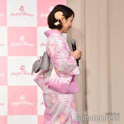 ピンク地にホワイトの花柄の浴衣姿で登壇した吉岡。「初夏を感じるような浴衣姿で、私も、とても楽しいです」と笑顔。浴衣姿でやりたいことを質問されると、「毎年、花火大会に行きたいとは思っているのですが、なかなか行けなくて、去年も一昨年も、お仕事の帰りの車の中で、花火大会の中継を観るという時間を過ごしています」と残念そう。「ぜひ、(今年は花火大会に行って)近くで本物の花火を観たいなと思っています」と期待に胸を膨らませた。