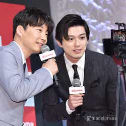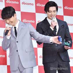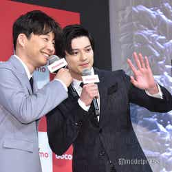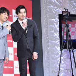 歌手で俳優の星野源と俳優の新田真剣佑が16日、都内で行われた新サービス・新商品発表会に出席した。