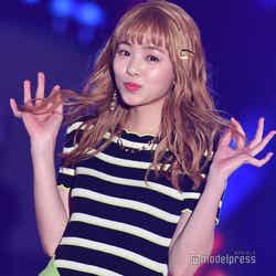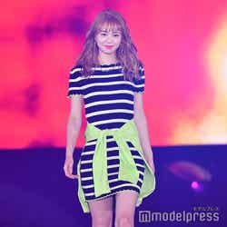ボーダー柄ミニワンピの爽やかなコーデでランウェイを歩き、ステージトップでは新たな髪色をキュートにアピールしていた。