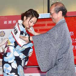 そして、門川大作京都市長から同PR大使のタスキを授与されると「さらに気が引き締まるものですね。しっかりPRしていかなとという気持ちでございます」と吐露し、どのように同祭の魅力を発信していきたいか尋ねられると「ここまで昔の京都のよさをそのまま引き継いているお祭りってなかなかないと思いますので、まさに日本の原風景だと思います。皆さんに来ていただいて、体感していただけたらいいなと思っております」とアピールした。