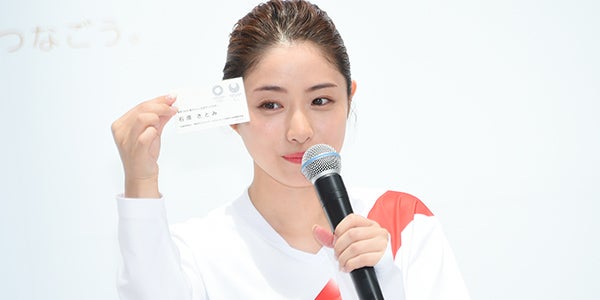2019年5月31日が、東京2020オリンピック聖火リレーがグランドスタートする300日前となることを記念して行われたこの日のイベント。東京2020聖火リレー公式アンバサダーの石原は、同じくアンバサダーの野村忠宏・田口亜希・サンドウィッチマン(伊達みきお・富澤たけし)と、同日発表された聖火ランナーユニフォームをまとい、トークセッションに参加した。