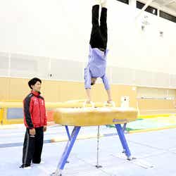 また、大会に先駆け知念は、谷川翔選手、谷川航選手、萱和磨選手の男子代表選手3人が練習する順天堂大学を訪問し、直撃インタビュー。谷川兄弟からは幼い頃のエピソードを聞くなど、知念ならではの質問で選手たちの素顔を引き出していた。そして、練習場で翔選手が見つめる中、あん馬にチャレンジした知念。現在の日本男子体操陣の中でも、あん馬を得意とする翔選手の目の前で2本の把手(ポメル)を掴み倒立に挑んだ。