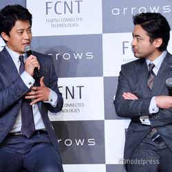 高所恐怖症の小栗は「ドキドキしているから、すごい手に汗をかくから、片手で手に持つ携帯がすべって、1度落としたんですよ」と明かすと、山田も「俺も落とした。緊張というか、落ち着きないんで、遊んでたらバンって。みんながハッてなりました」と2人とも撮影用の携帯電話を落としたという。小栗は「かなり強度があって割れないと言っても、高さ10階から落ちたらどうなるか、わからないからドキッとしますね」と苦笑した。さらに、同CMではダッシュするシーンもあり、山田は「年齢を痛感させられる。年取ったね、俺ら」と振ると、小栗は「この日も、いきなり階段ダッシュだったので、思った以上にグッときた」と撮影が想像以上にきつかったことを明かした。(modelpress編集部)