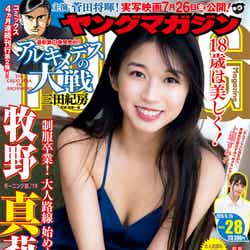 モーニング娘。’19の牧野真莉愛が、10日発売の「週刊ヤングマガジン」28号の表紙を飾った。