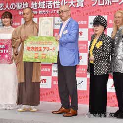 第13回「全国プロポーズの言葉コンテスト2019」&第1回「恋人の聖地 地域活性化大賞」授賞記者発表会が11日、都内で行われ、歌舞伎俳優の市川海老蔵、プロフィギュアスケーターの村上佳菜子、ファッションデザイナーの桂由美氏、華道家の假屋崎省吾氏らが出席した。