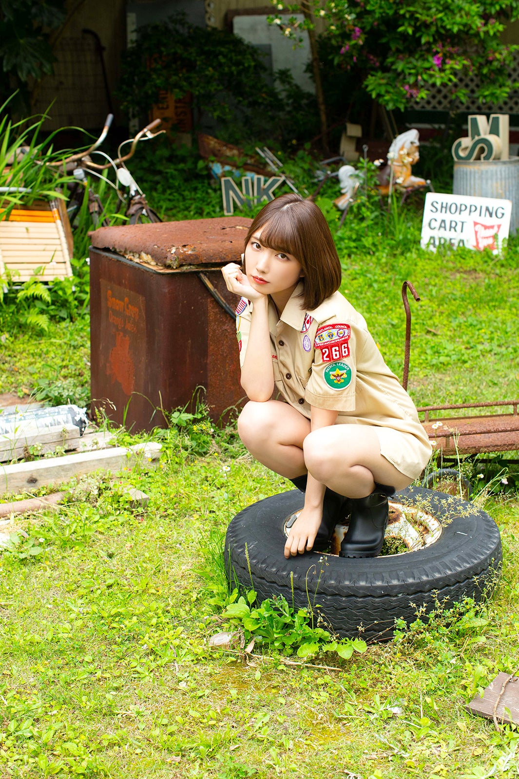 私の最大のコンプレックスのお尻が大胆に見えてるので注目してほしいです!(笑)昔からお尻が大きいのがコンプレックスだったんですが、今回カメラマンさんに凄く綺麗に撮っていただいて、そのおかげで、あ、お尻が大きいのって最大の武器でもあるんだ、好きになれそうだなと思いました!後は、水着で洗車するシチュエーションでも撮ったんですが、スタッフさんたちにたくさん泡をつけられて楽しかったです(笑)。