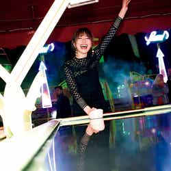 公式ツイッター&インスタグラムは、特別企画「守屋茜と妄想デート~ナイト編~」と題して、守屋とデートをしている体験を味わえる写真を連投。撮影場所はモナコの移動遊園地。透け感のある大人な雰囲気の黒のワンピース姿の守屋が、エアホッケーを楽しんだり、かわいい綿菓子を食べたりと、最高の笑顔を見せている。