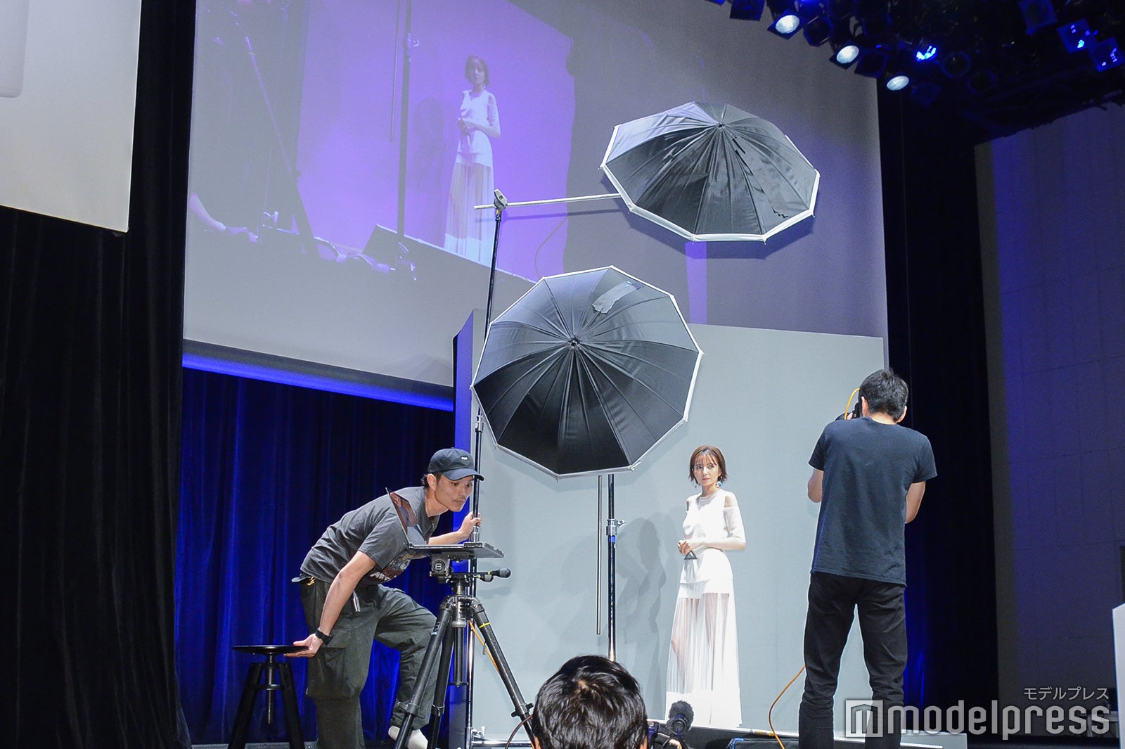 イメージモデルを務めるベッキーは、「スキンケアのCMに出させていただくことが夢でしたので、夢が叶って本当にうれしいです」と笑顔。ステージ上でCM撮影風景を再現し、さまざまなポージングを決めた際にも「こっぱずかしいです」とにっこり。