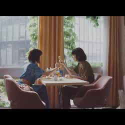 撮影は6月初旬、初顔合わせとなった2人は、この日の共演を楽しみにしていたらしく、にこやかに挨拶を交わして、仲良くカメラ前にスタンバイ。監督によるコンテ説明、セリフの確認、一連の段取りのリハーサルが終わる頃には、すっかり肩の力も抜けて、好きな食べ物やオフの過ごし方、最近撮った映像作品の話題で打ち解けるなど、とても和やかな雰囲気で本番を迎えていた。また、監督が「今回のメインイベント」「ここが一番難しい」と位置付けた、浜辺がフォークを一突きするカットは、後ろを向くと同時に繰り出すノールックの芝居ということで苦労。それでも「もっと思い切り」という指示で覚悟を決めると、回を重ねるごとにぐんぐん精度がアップ。すべてが完璧に整ったOKテイクでは、真っ先に手を叩いて称賛した有村に続いて、周囲からも大きな拍手がわき起こった。
