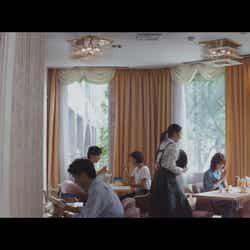 有村がイチゴを食べた後、浜辺のイチゴも横取りしようと画策し、あえなく失敗してしまう場面では、オフナレに沿って描かれる胸の内を、表情や仕草だけで表現。有村は、真っ赤なイチゴを食べる幸せそうな笑顔から一転、イタズラを思いついた時の茶目っ気たっぷりの表情、何気なく妹の様子を探るちょっぴり怪しい目つきなど、セリフがなくとも、見る者に心の動きが十分伝わってくる豊かな演技力を発揮した。有村架純・浜辺美波、食べたイチゴの数は?