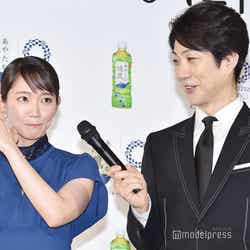 和装のイメージが強い野村のスーツ姿を見た吉岡は「素敵ですねえ。凛とされていて美しいです」とうっとり。対してシックなブルーのワンピース姿で登場した吉岡は「野村萬斎さんの横に立たせていただけるということで、ちょっとシックに」と紹介した。