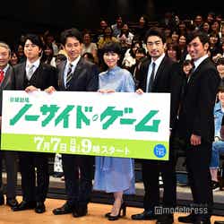 俳優の大泉洋、松たか子、眞栄田郷敦が30日、都内で開催されたTBS日曜劇場「ノーサイド・ゲーム」(7月7日よりスタート/毎週日曜よる9時~)プレミアム試写会&制作発表イベントに出席した。